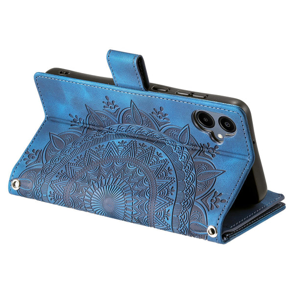 For Samsung Galaxy A06 5G Multi-Card Totem Zipper Leather Phone Case(Blue)