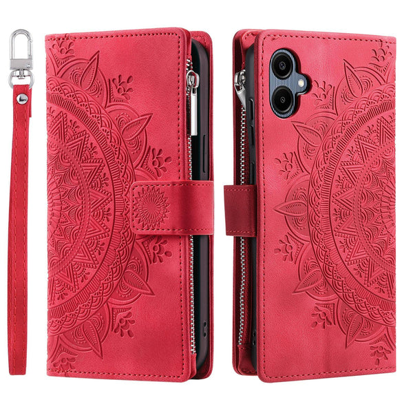 For Samsung Galaxy A06 5G Multi-Card Totem Zipper Leather Phone Case(Red)