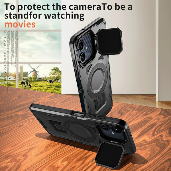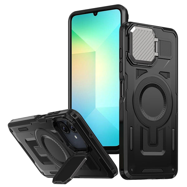 For Samsung Galaxy A06 5G Shield Frame Holder MagSafe Phone Case(Black)