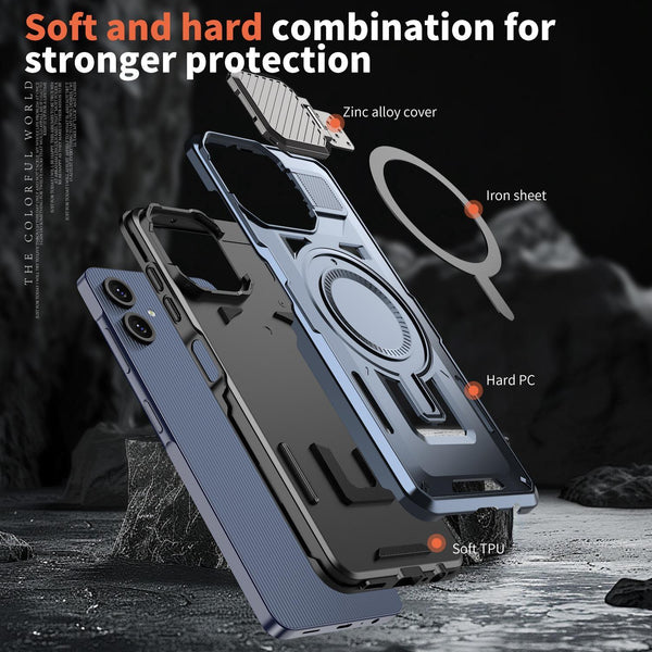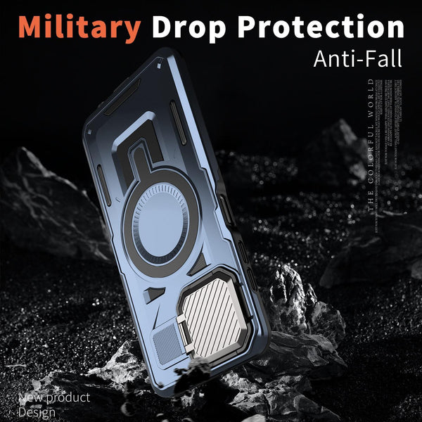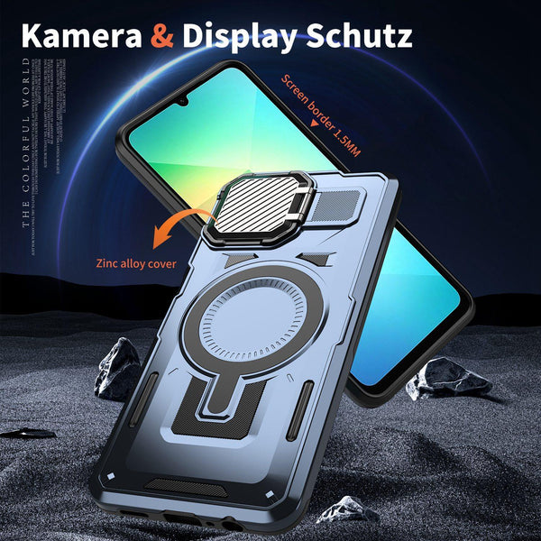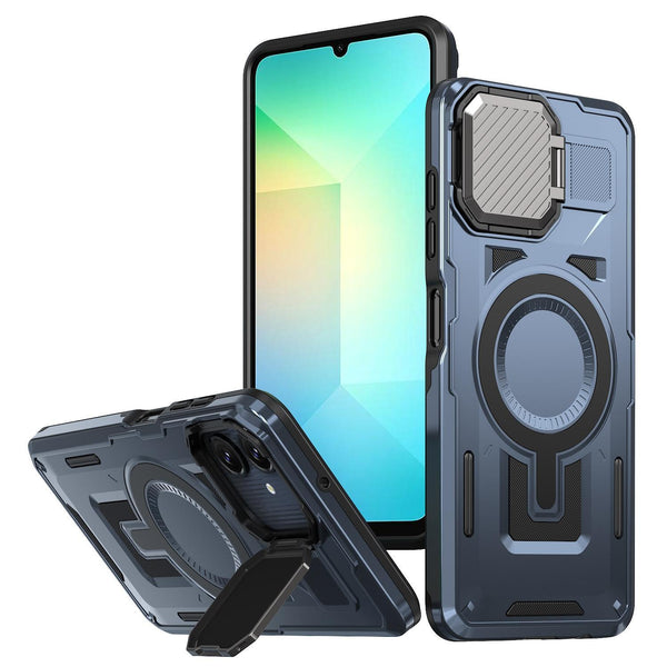 For Samsung Galaxy A06 5G Shield Frame Holder MagSafe Phone Case(Blue)