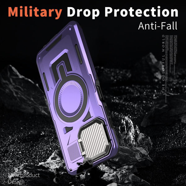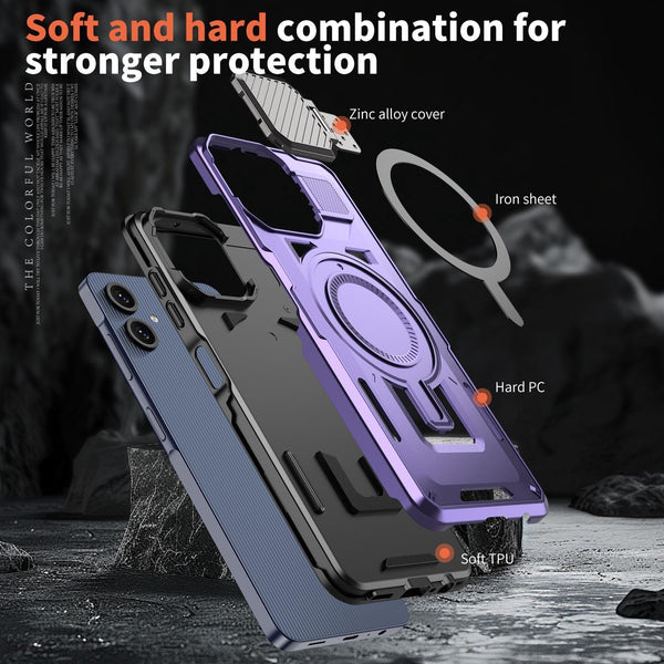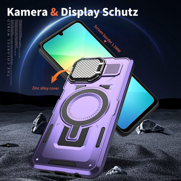 For Samsung Galaxy A06 5G Shield Frame Holder MagSafe Phone Case(Purple)