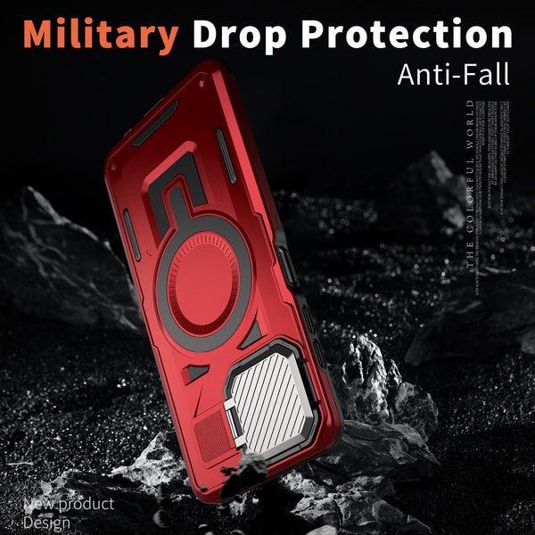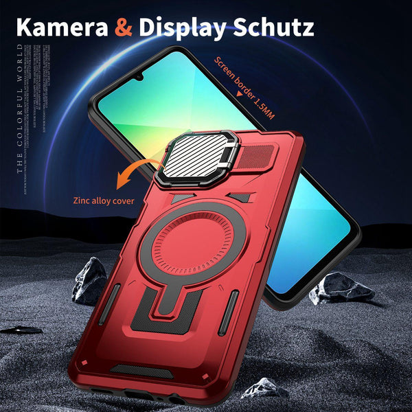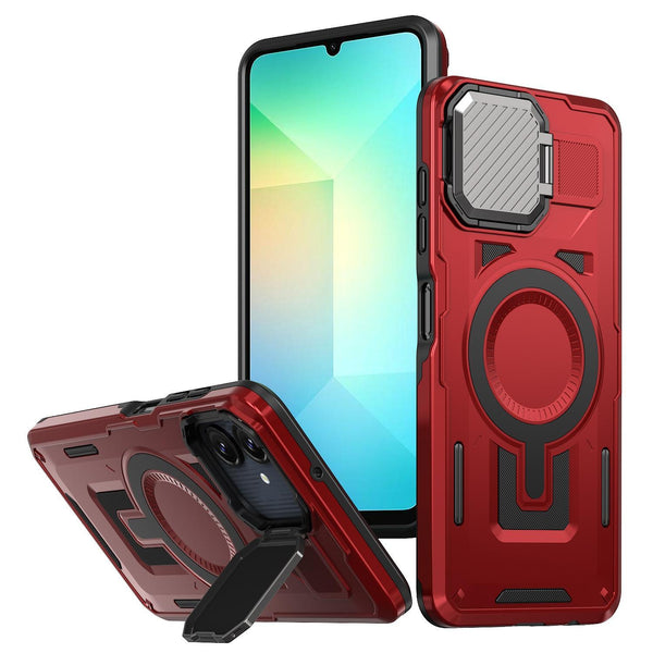For Samsung Galaxy A06 5G Shield Frame Holder MagSafe Phone Case(Red)