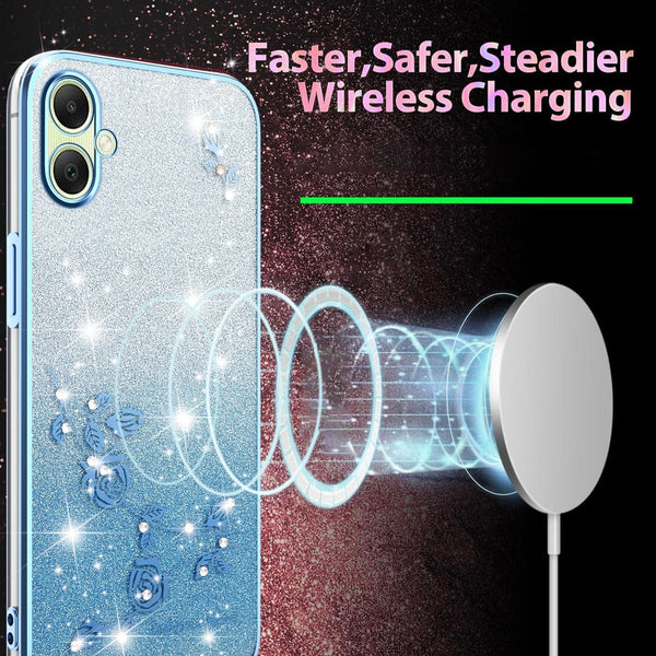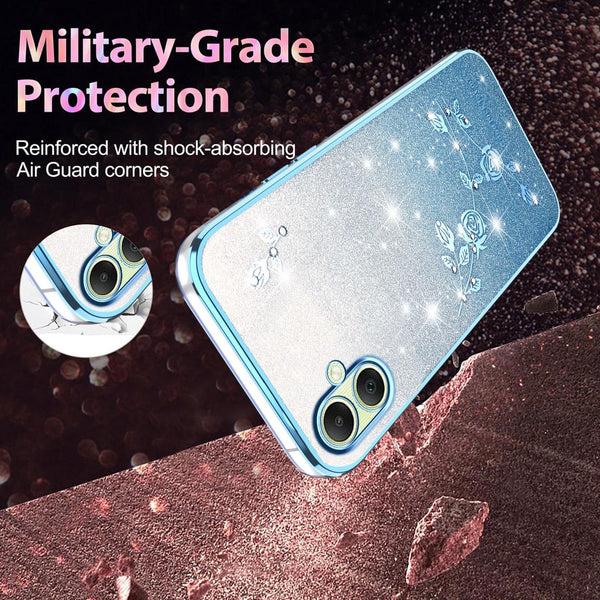 For Samsung Galaxy A06 Gradient Glitter Flower All-inclusive Phone Case(Blue)