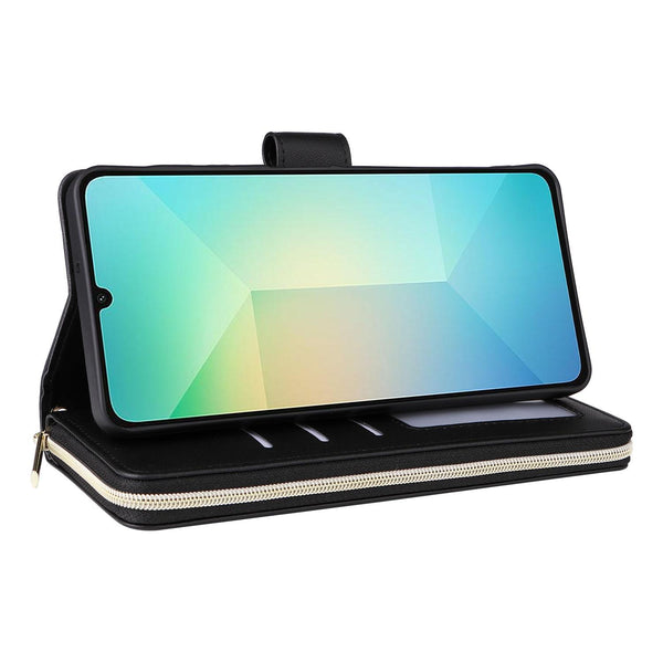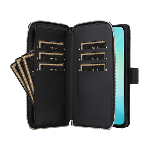 For Samsung Galaxy A06 Nine-card Slots Zipper Wallet Bag Leather Phone Case(Black)
