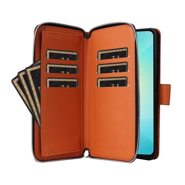 For Samsung Galaxy A06 Nine-card Slots Zipper Wallet Bag Leather Phone Case(Brown)