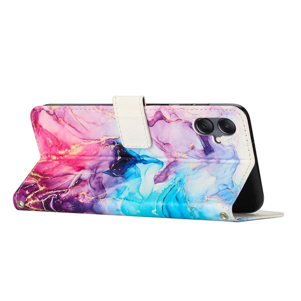 For Samsung Galaxy A06 Painted Marble Pattern Leather Phone Case(Pink Purple)