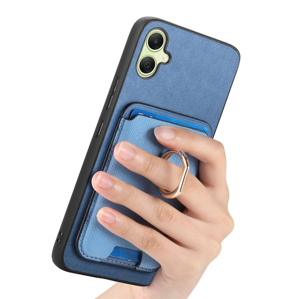 For Samsung Galaxy A06 Retro Cross Leather Ring Vertical Insert Card Bag MagSafe Phone Case(Blue)