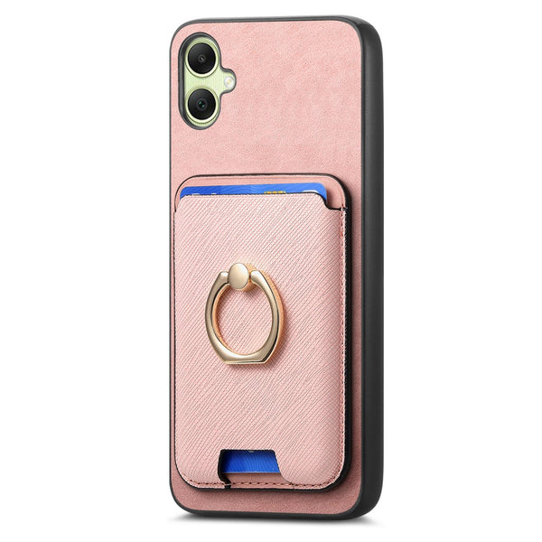 For Samsung Galaxy A06 Retro Cross Leather Ring Vertical Insert Card Bag MagSafe Phone Case(Pink)