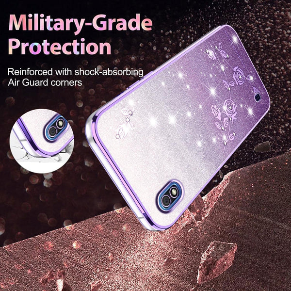 For Samsung Galaxy A10 Gradient Glitter Flower All-inclusive Phone Case(Purple)
