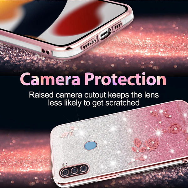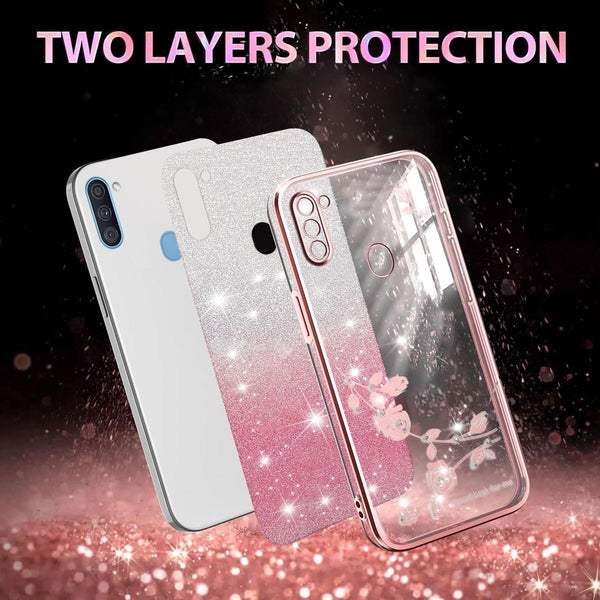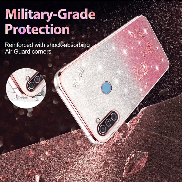For Samsung Galaxy A11 Gradient Glitter Flower All-inclusive Phone Case(Pink)