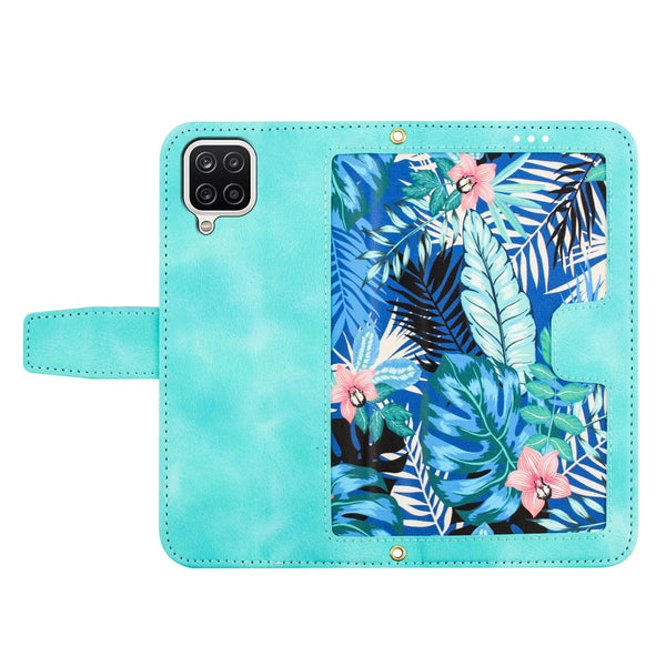 For Samsung Galaxy A12 5G Floral Pattern Leather Phone Case with Lanyard(Green)