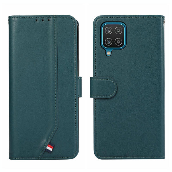 For Samsung Galaxy A12 ABEEL Delicate Texture Splicing RFID Leather Phone Case(Green)