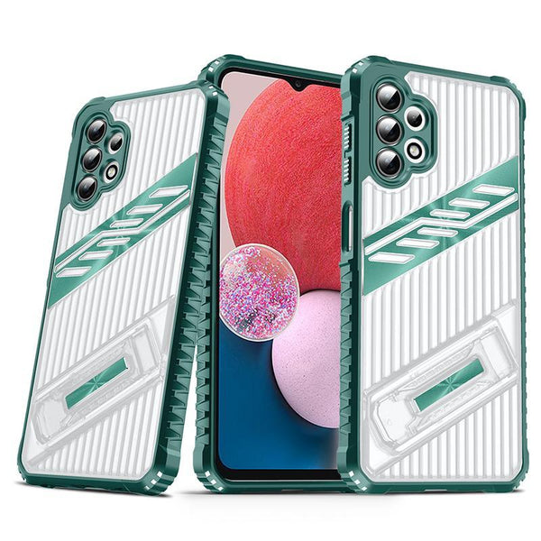 For Samsung Galaxy A13 4G / 5G Plating Holder PC Hybrid TPU Phone Case(Dark Green)