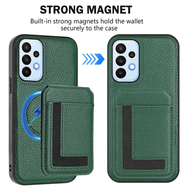 For Samsung Galaxy A13 4G CX01 Detachable Magsafe Magnetic Card Bag Phone Case(Peacock Green)