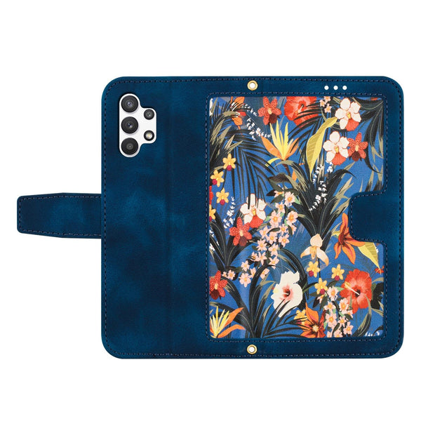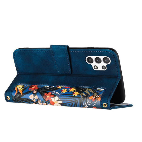 For Samsung Galaxy A13 5G / 4G Floral Pattern Leather Phone Case with Lanyard(Dark Blue)