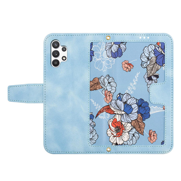 For Samsung Galaxy A13 5G / 4G Floral Pattern Leather Phone Case with Lanyard(Light Blue)