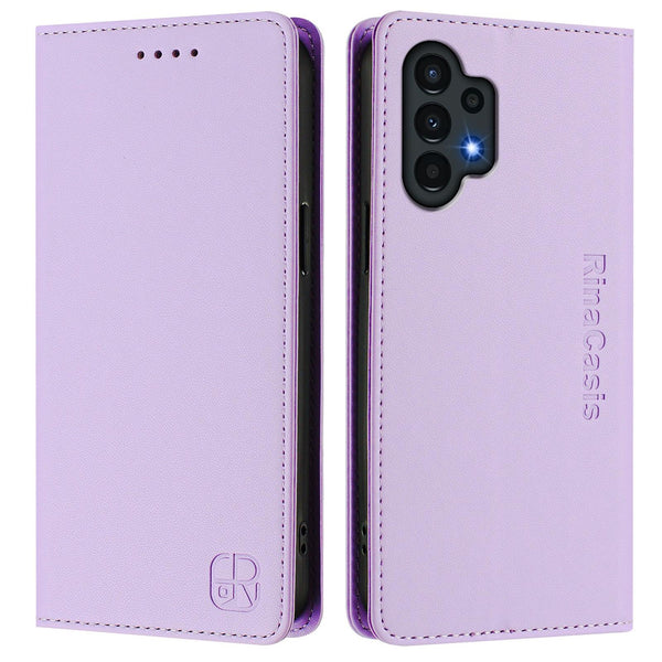 For Samsung Galaxy A13 5G / 4G RC01 Dual-Folded Magnetic Suction RFID Leather Phone Case(Light Purple)