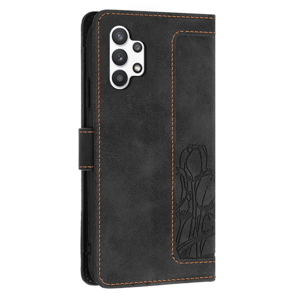 For Samsung Galaxy A13 5G / 4G Tulips Embossed Leather Phone Case with Lanyard(Black)