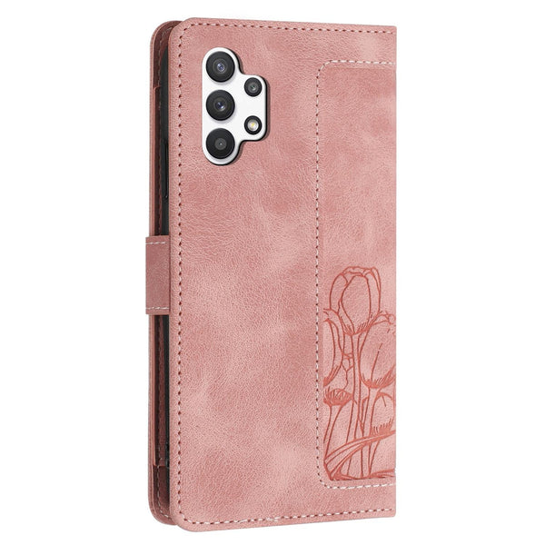 For Samsung Galaxy A13 5G / 4G Tulips Embossed Leather Phone Case with Lanyard(Pink)