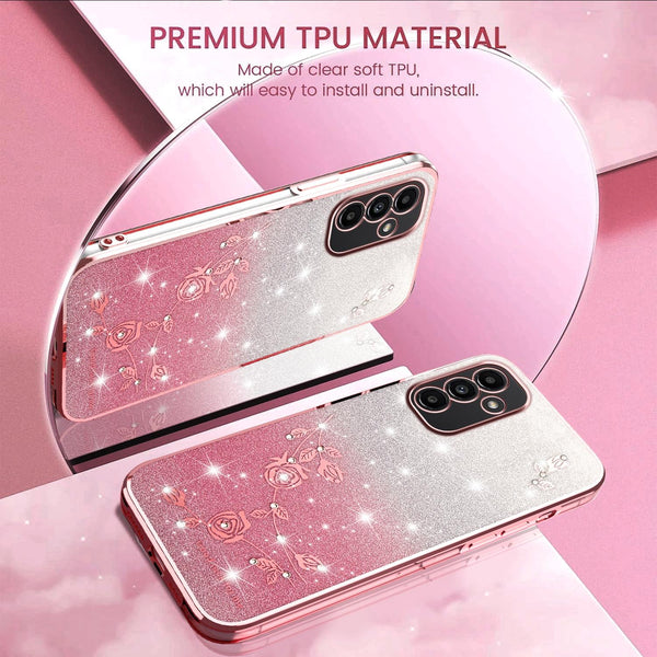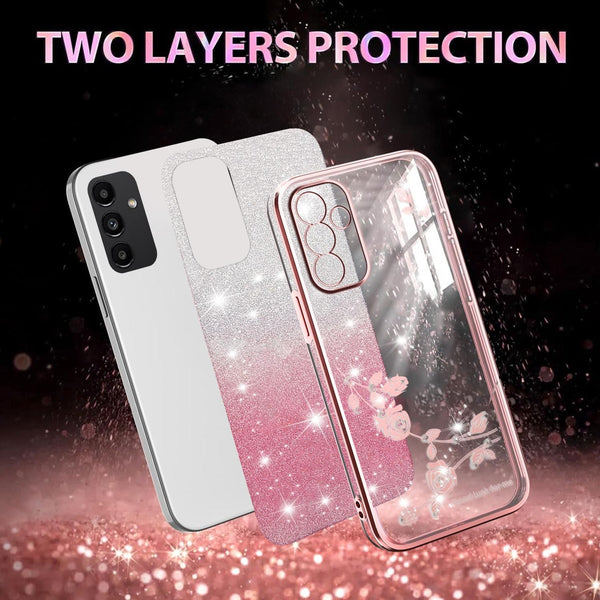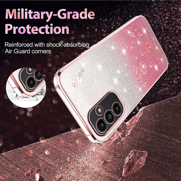 For Samsung Galaxy A13 5G Gradient Glitter Flower All-inclusive Phone Case(Pink)