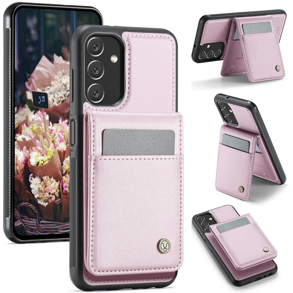 For Samsung Galaxy A13 5G JEEHOOD J06 British Style RFID MagSafe Card Bag PU Phone Case(Pink)