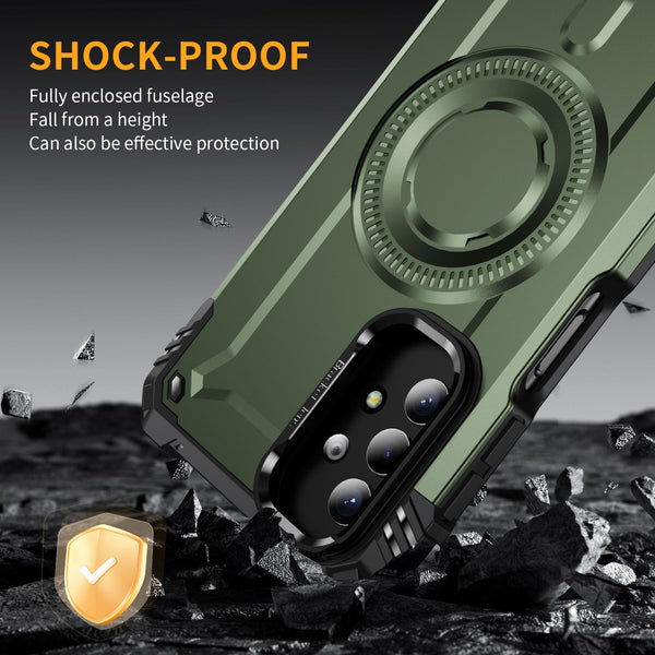 For Samsung Galaxy A13 5G Lens Holder MagSafe Phone Case(Army Green)