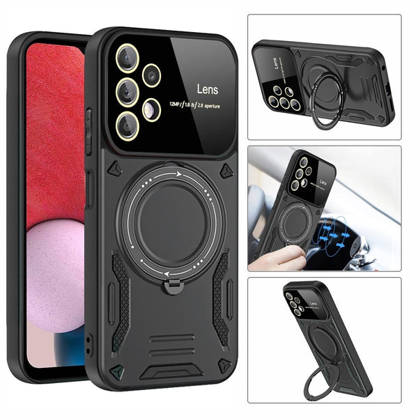 For Samsung Galaxy A13 Large Window MagSafe Holder Phone Case(Blue)