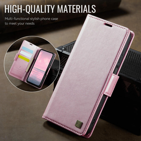 For Samsung Galaxy A14 4G / 5G AutSpace A11 Side Buckle MagSafe Magnetic RFID Phone Leather Case(Rose Gold)