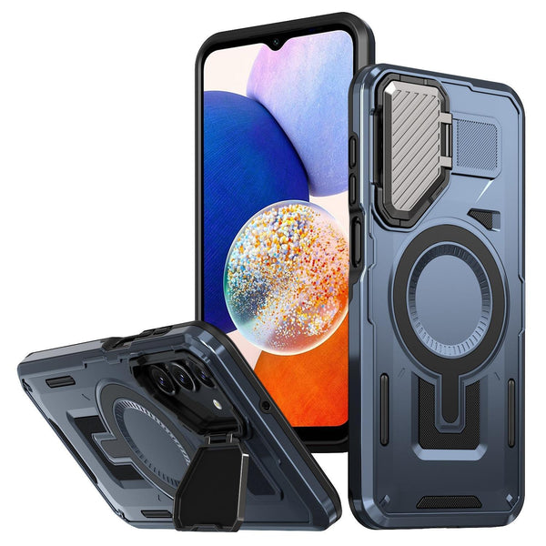 For Samsung Galaxy A14 4G / 5G Shield Frame Holder MagSafe Phone Case(Blue)