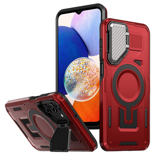 For Samsung Galaxy A14 4G / 5G Shield Frame Holder MagSafe Phone Case(Red)