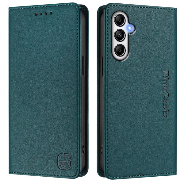 For Samsung Galaxy A14 5G / 4G RC01 Dual-Folded Magnetic Suction RFID Leather Phone Case(Dark Green)