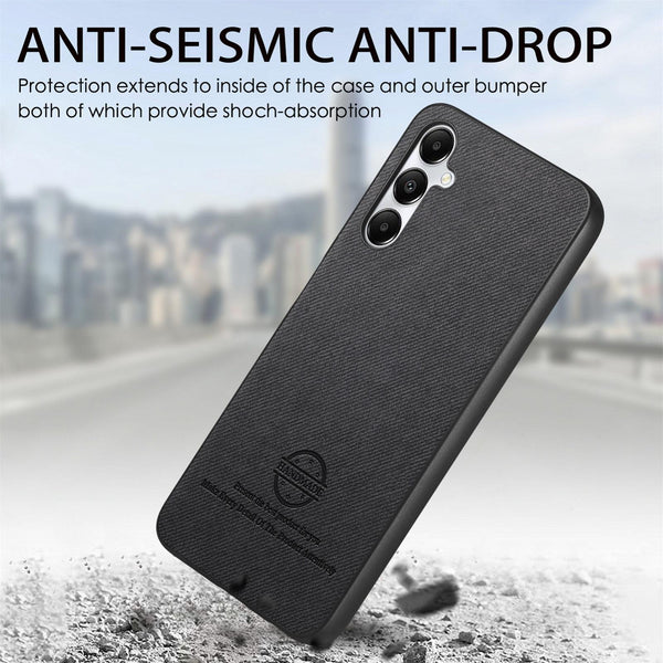 For Samsung Galaxy A14 Twill Fabric Leather Skin Back Phone Case(Black)