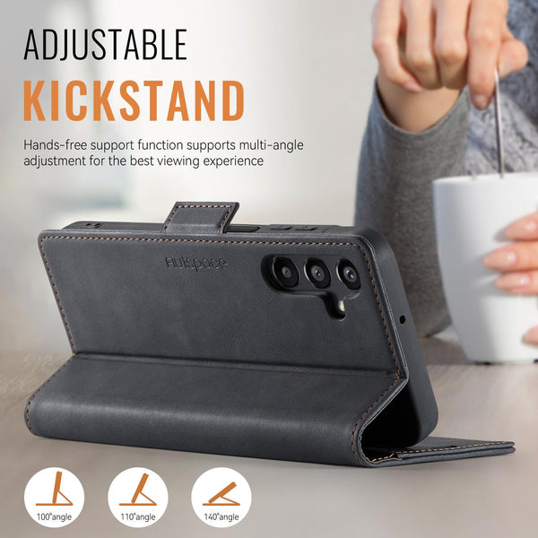 For Samsung Galaxy A15 4G / 5G AutSpace A11 Side Buckle MagSafe Magnetic RFID Phone Leather Case(Black)