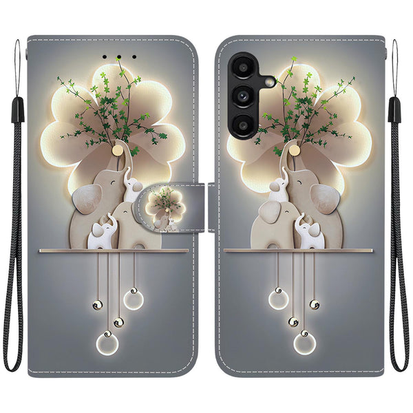 For Samsung Galaxy A15 Crystal Texture Colored Drawing Leather Phone Case(Elephants)