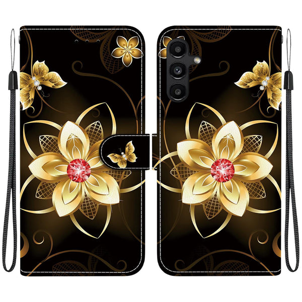 For Samsung Galaxy A15 Crystal Texture Colored Drawing Leather Phone Case(Gold Flower)