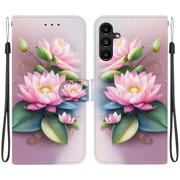 For Samsung Galaxy A15 Crystal Texture Colored Drawing Leather Phone Case(Lotus)