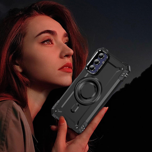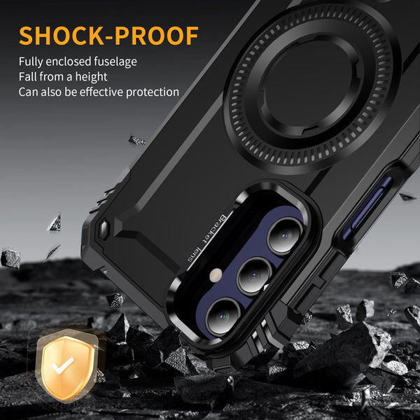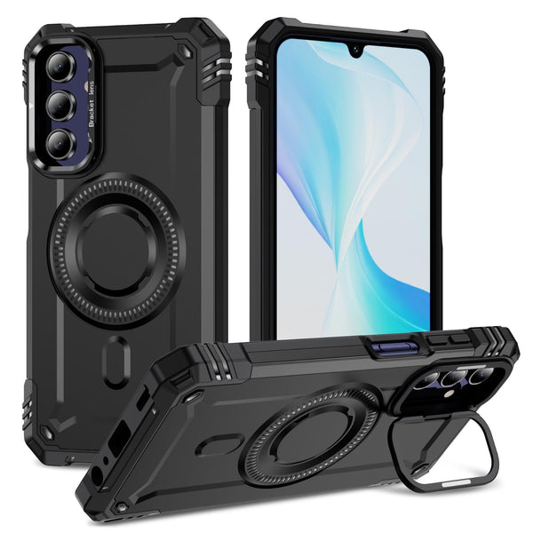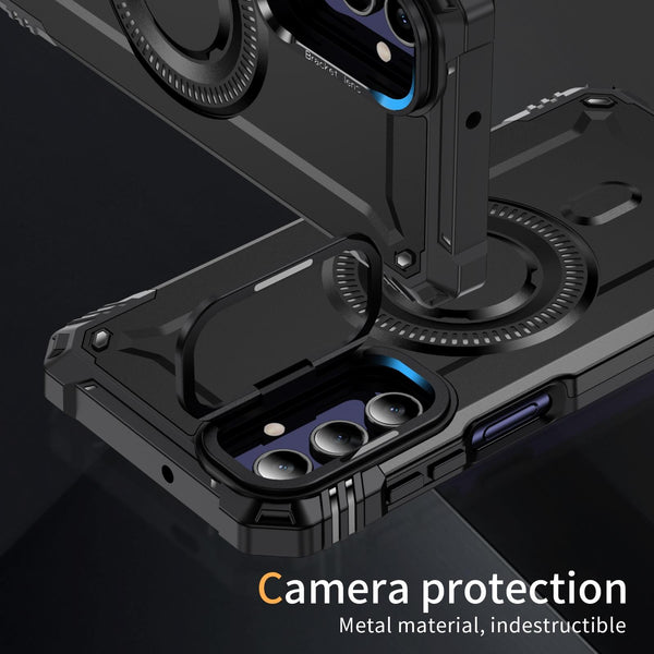 For Samsung Galaxy A15 Lens Holder MagSafe Phone Case(Black)