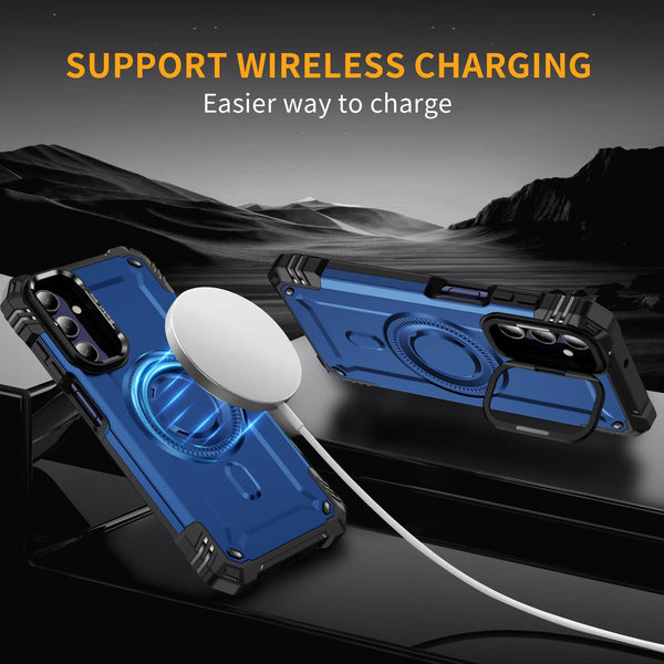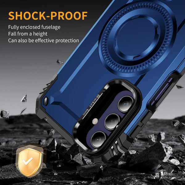 For Samsung Galaxy A15 Lens Holder MagSafe Phone Case(Blue)