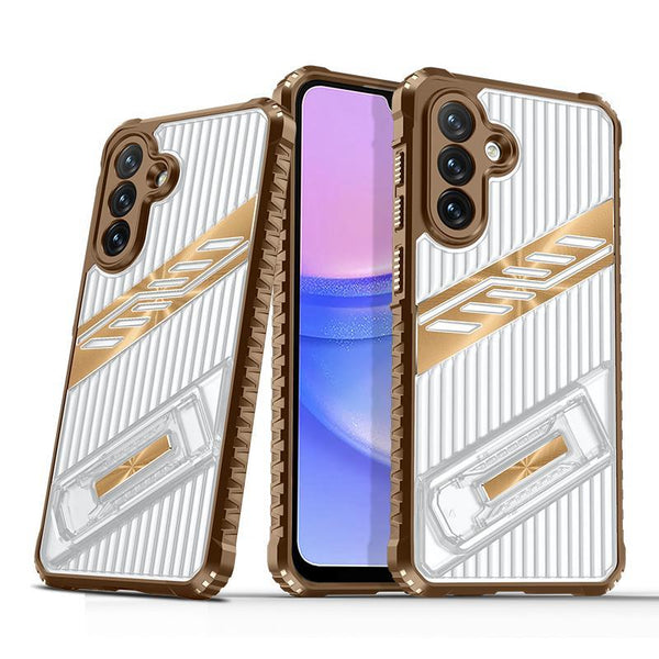 For Samsung Galaxy A15 Plating Holder PC Hybrid TPU Phone Case(Desert Gold)