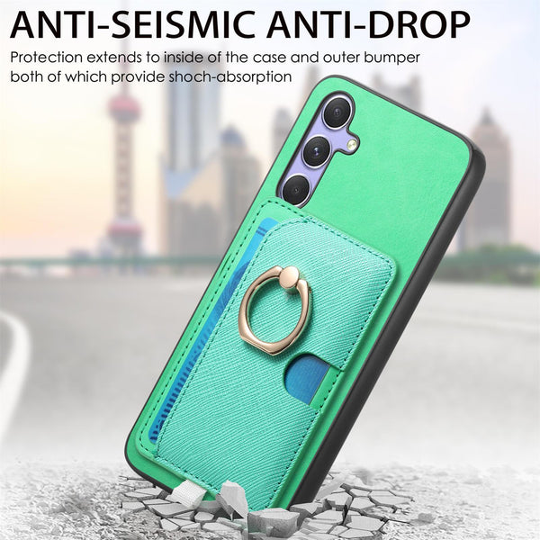 For Samsung Galaxy A15 Retro Cross Leather Ring Side Insert Card Bag MagSafe Phone Case(Green)