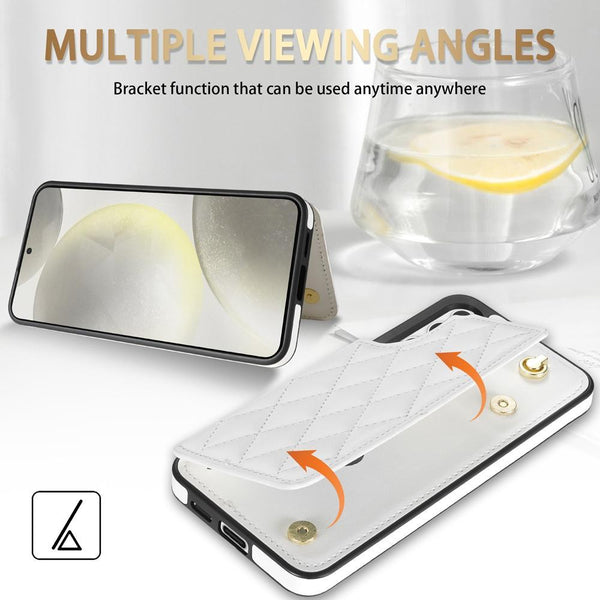 For Samsung Galaxy A15 Rhombic Dual Buckle Card Slots Phone Case with Lanyard(White)