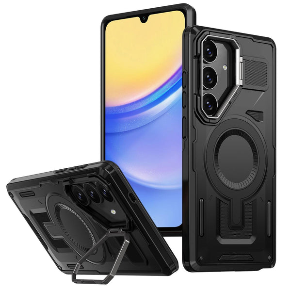For Samsung Galaxy A15 Shield Hollow Frame Holder MagSafe Phone Case(Black)