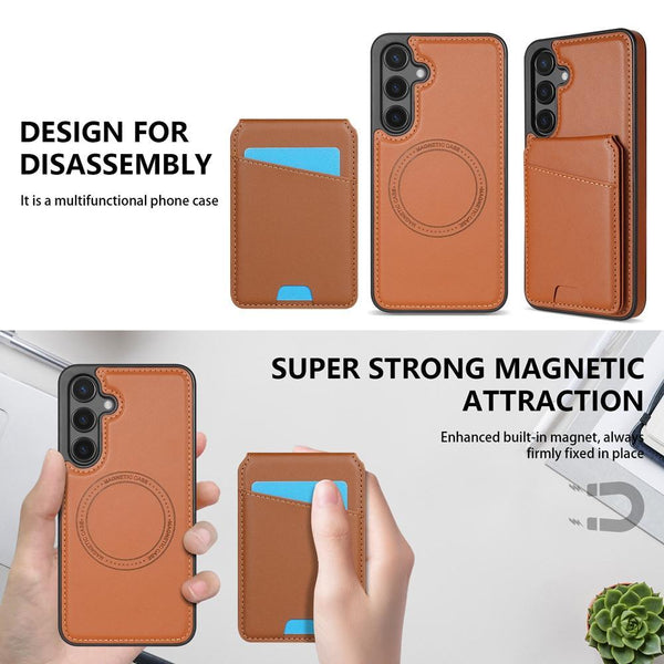 For Samsung Galaxy A15 Skin Feel Detachable Card Bag Magsafe Phone Case(Brown)