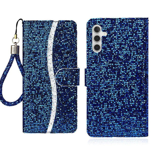 For Samsung Galaxy A164G / 5G Glitter Powder Filp Leather Phone Case(Blue)