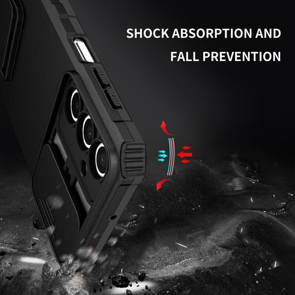 For Samsung Galaxy A164G / 5G Stereoscopic Holder Sliding Camshield Phone Case(Black)