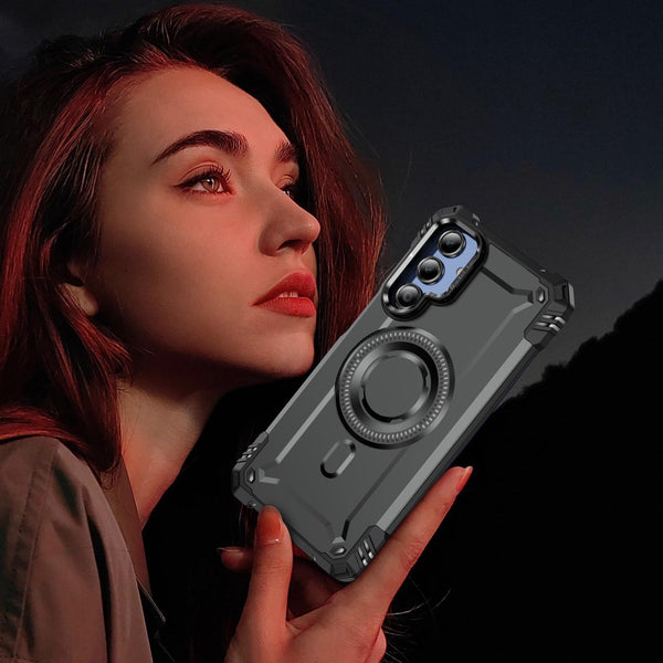 For Samsung Galaxy A16 5G Lens Holder MagSafe Phone Case(Grey)