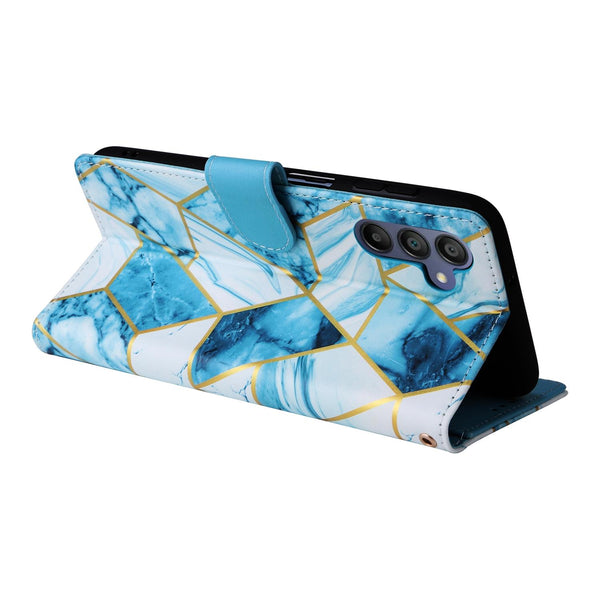 For Samsung Galaxy A16 5G Marble Bronzing Stitching Leather Phone Case(Blue)
