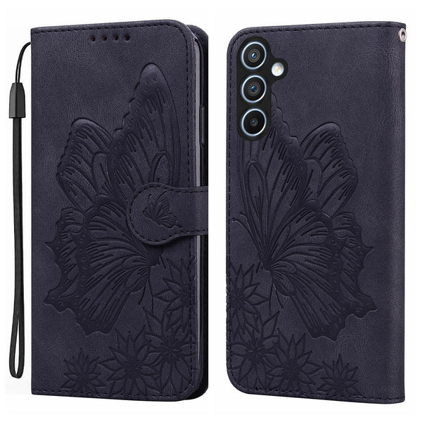 For Samsung Galaxy A16 5G Retro Skin Feel Butterflies Embossing Horizontal Flip Leather Phone Case(Black)