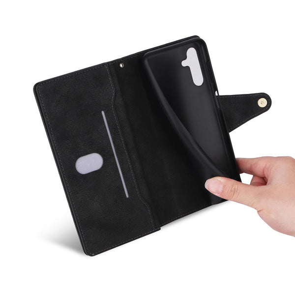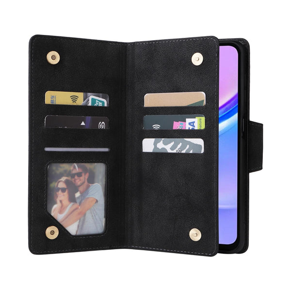 For Samsung Galaxy A16 5G Rivet Buckle 9 Cards Three Fold Leather Phone Case(Black)