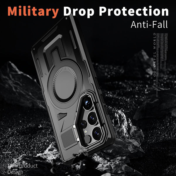 For Samsung Galaxy A16 5G Shield Hollow Frame Holder MagSafe Phone Case(Black)